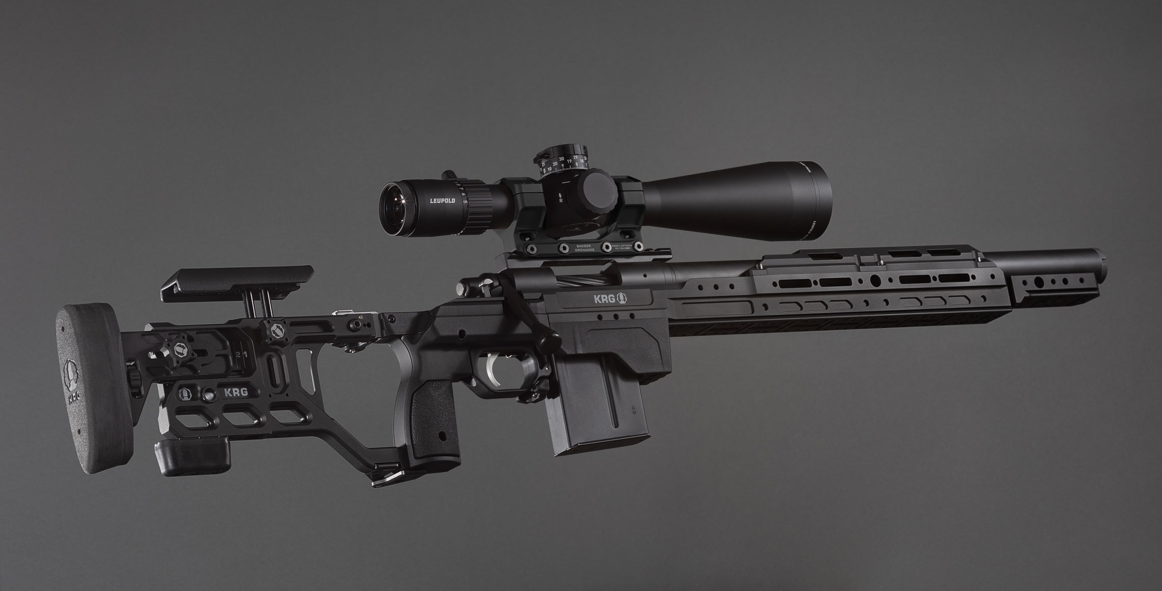 Introducing the Whiskey-3 Pro the flagship KRG chassis system. Combining elements of the Whiskey-3 and C-4 into one platform with the features many have been asking for. The new monolithic aluminum front end combines our traditional backbone with an extended forend featuring an integrated ARCA rail on the bottom and M-Lok mounting points at the 3, 6, & 9 o’clock positions. The back end features an all new cheekpiece with fore & aft as well as side to side adjustment. The folding version can be user configured to fold to the left or the right.